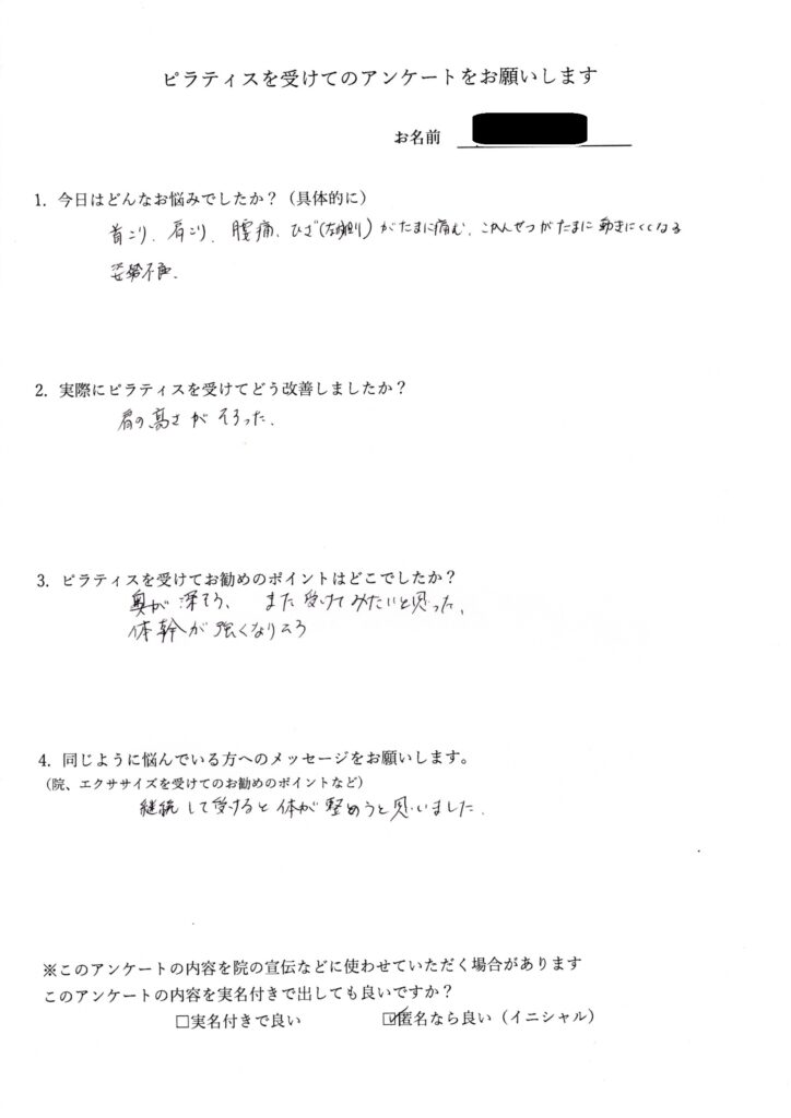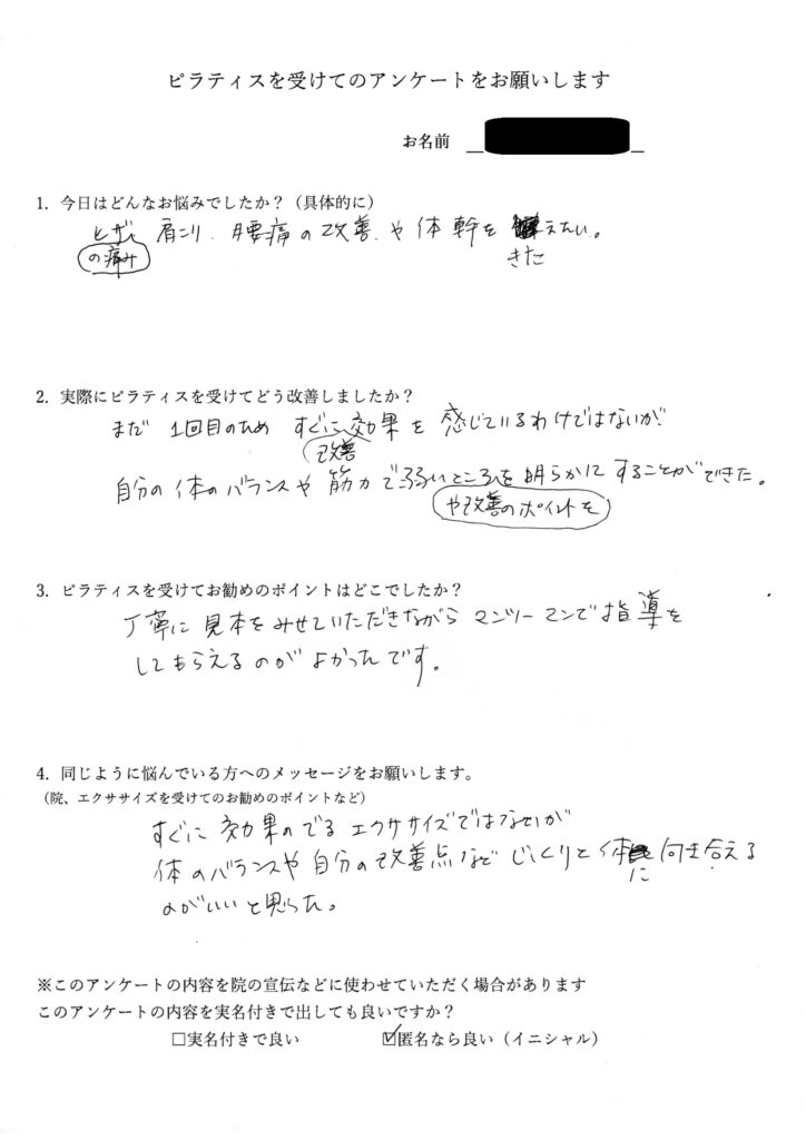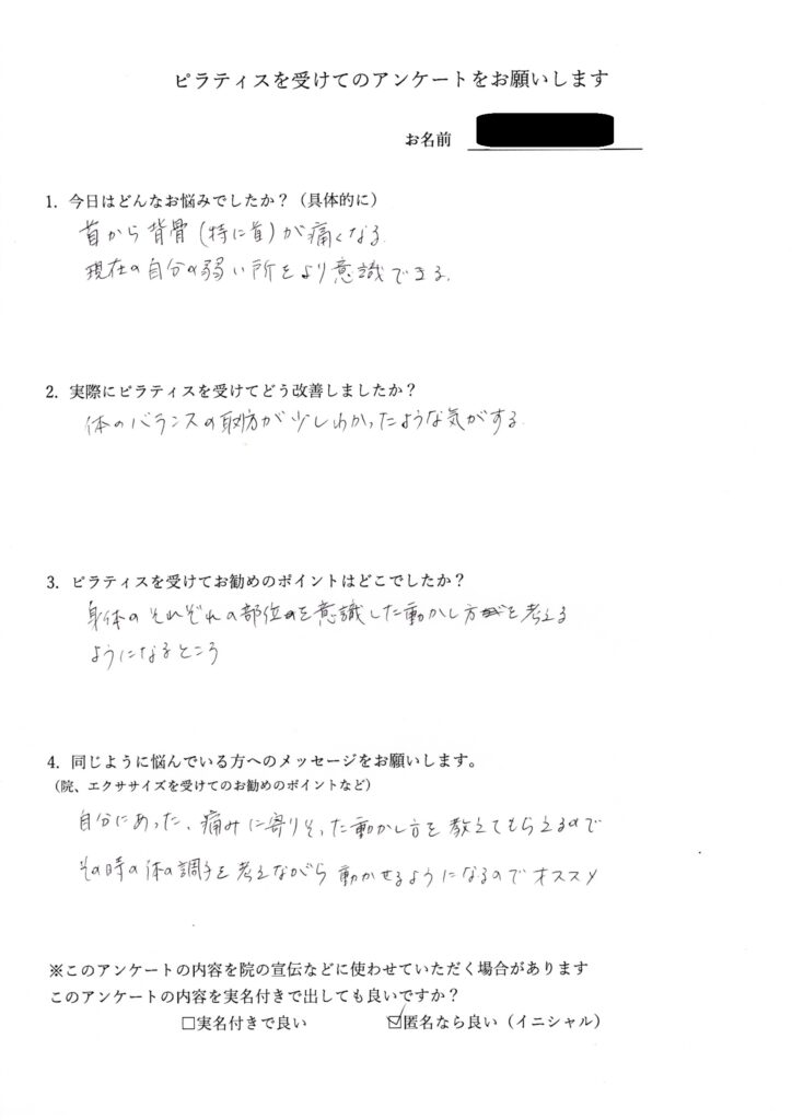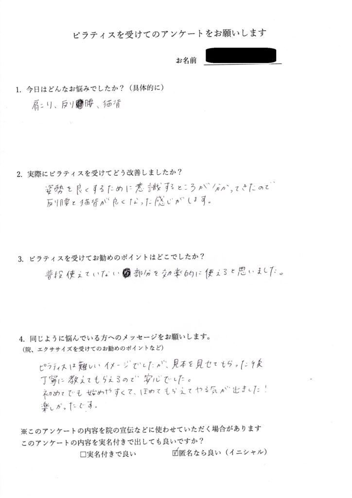 今の自分の身体の状態も客観的にふりかえることができてよかったです。